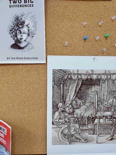 The day I found out, I was of course distraught at the loss of my friend. Sitting in my office, I started looking at some artwork, a calendar of Albrecht Dürer etchings which I’d hung recently. I started looking at Dürer’s use of hatching to make shades. Any visual artist would tell me it’s a common technique. Bill was such an artist, and we had some fantastic conversations, sometimes quite heated!
